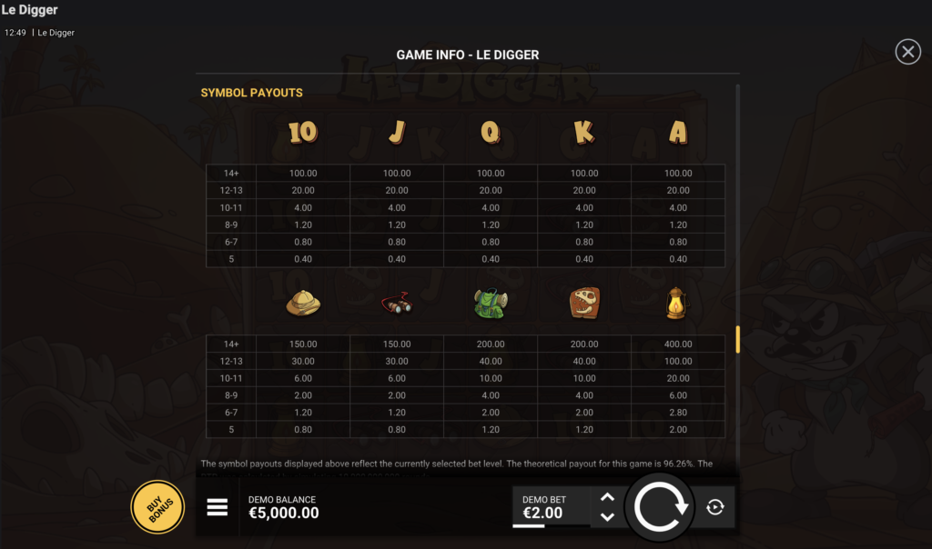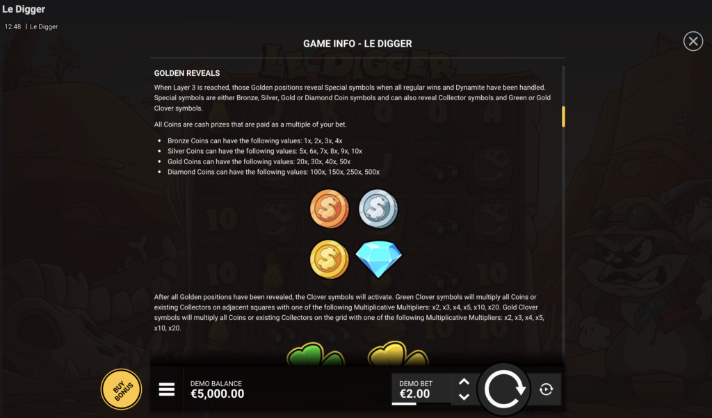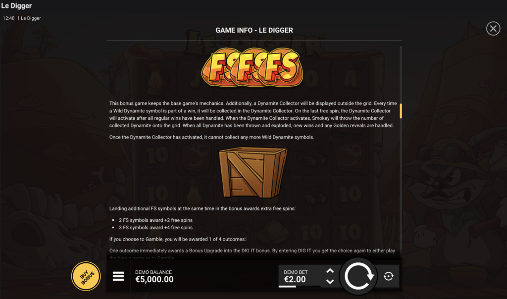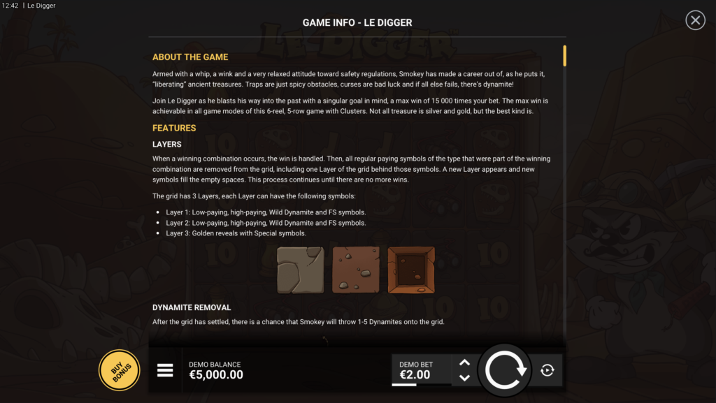 Before buying any feature, make sure you understand how it works. Mechanics such as multipliers, sticky wilds, cascading wins or respins can greatly affect your results. Trying demo versions or watching gameplay can help you make a more informed choice. Each game will have information on the game rules, mechanics and bonus buy options as below: